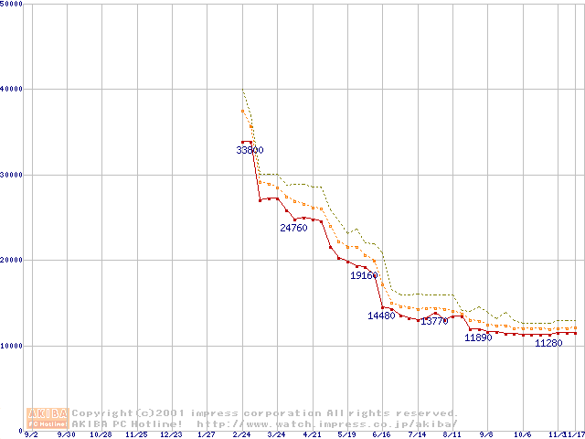 Athlon 1.2GHz(FSB266) (Thunderbird) バルクの価格推移
