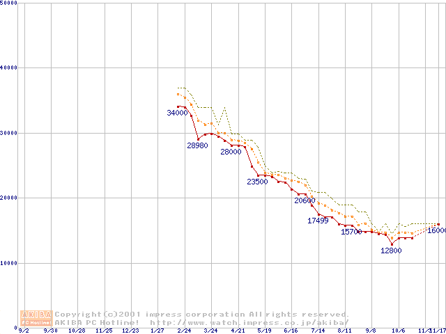 Athlon 1.2GHz(FSB200) (Thunderbird) リテールパッケージの価格推移