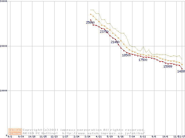 Deskstar 60GXP (7200rpm UltraATA/100 2MB)の最安値推移