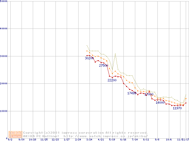 Athlon 1.2GHz(FSB266) (Thunderbird) リテールパッケージの価格推移