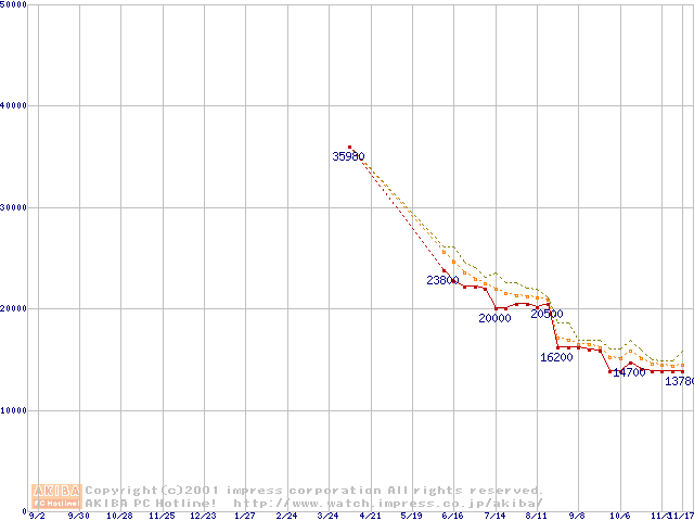Athlon 1.33GHz(FSB266) (Thunderbird) リテールパッケージの価格推移