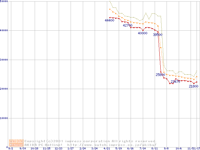 Pentium 4 1.7GHz(423pin)リテールパッケージ(RIMMなし)の価格推移