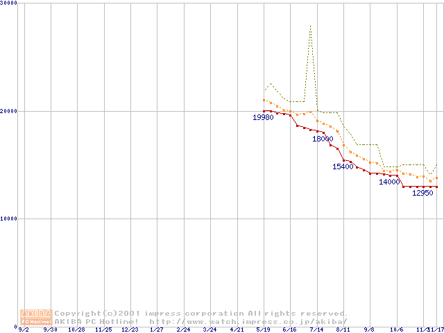 DiamondMax 536DX (5400rpm UltraATA/100 33.3GB/Platter)の最安値推移