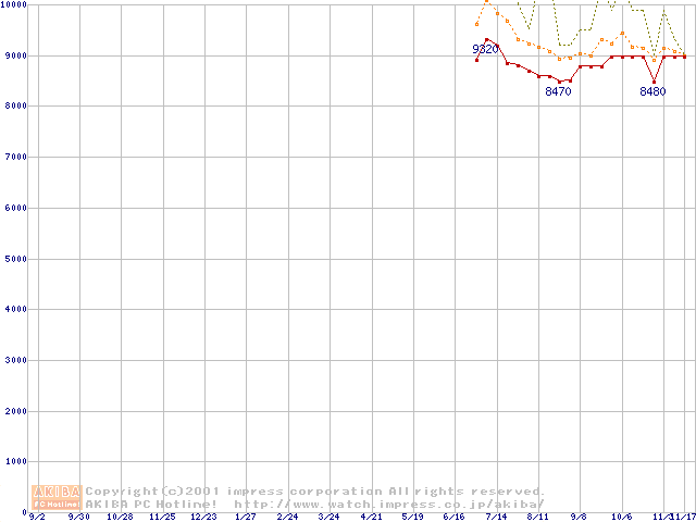 HDD 20GB~30GB未満(5400rpmクラス)の最安値推移