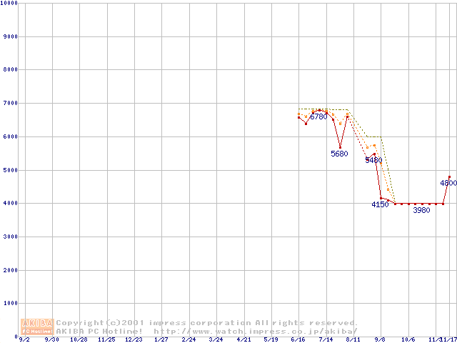 Socket 370 (PGA,FSB 100MHz,L2 64KB)の最安値推移