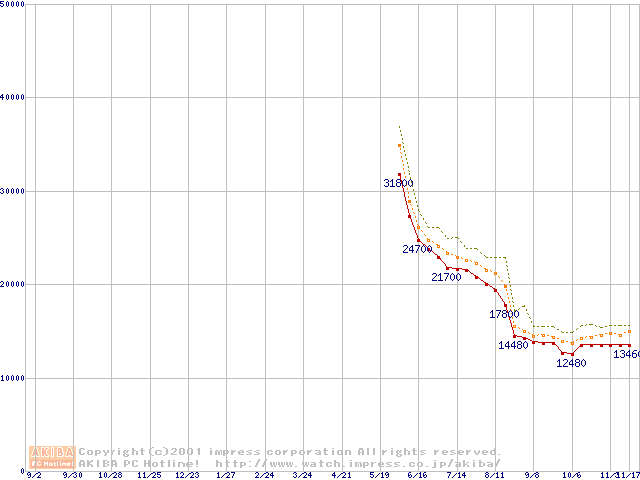 Athlon 1.4GHz(FSB266) (Thunderbird) バルクの価格推移