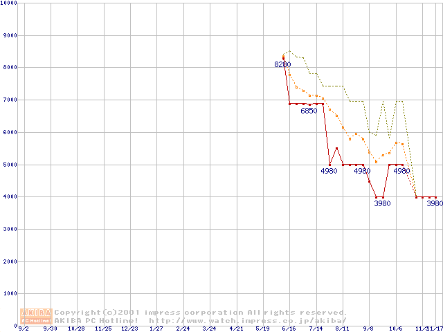 Socket 370 (PGA,FSB 133MHz,L2 64KB)の最安値推移