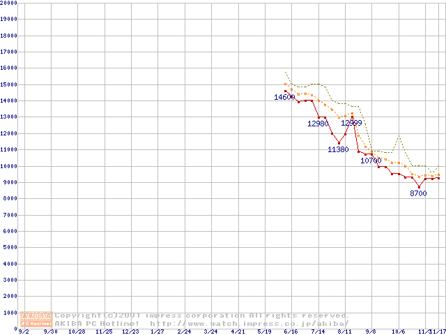 Duron 950MHz リテールパッケージの価格推移