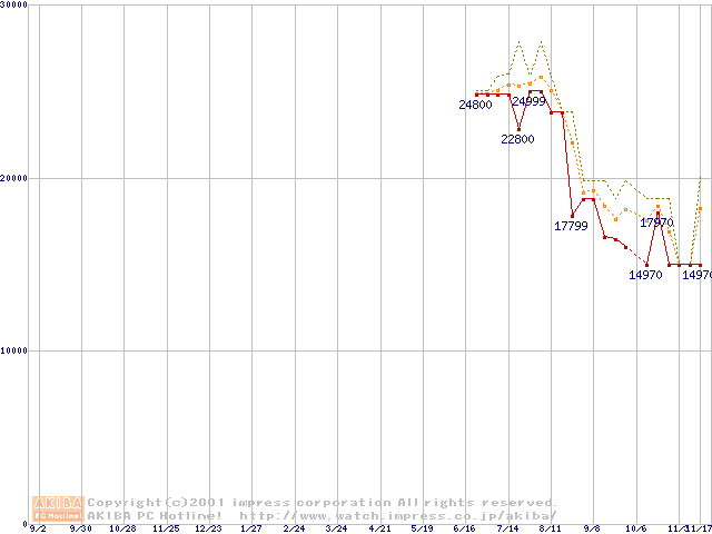 Pentium 4 1.4GHz(423pin)リテールパッケージ(RIMMなし)の価格推移