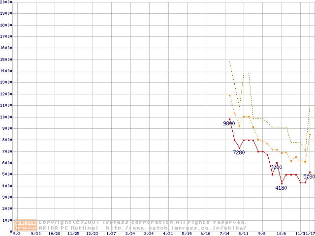 メモリ主要製品の最安値推移