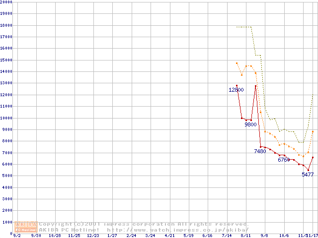 PC2100(DDR266) DDR SDRAM DIMM ECC対応 Registeredタイプの最安値推移
