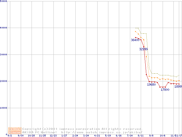 Pentium 4 1.6GHz(423pin)リテールパッケージ(RIMMなし)の価格推移