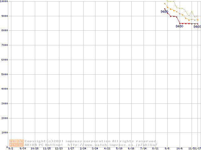 Socket 370 (FC-PGA,FSB 100MHz,L2 128KB)の最安値推移