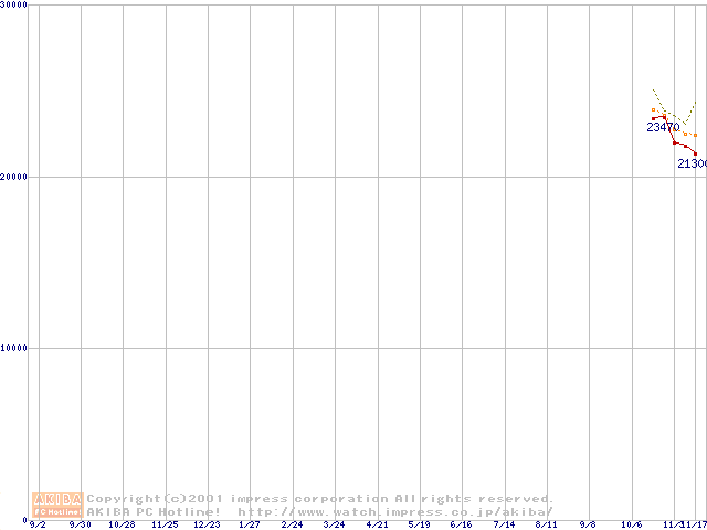 Socket A (Palomino,PGA,FSB 266MHz,L2 256KB)の最安値推移