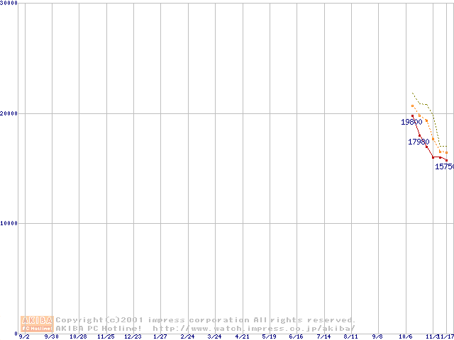 Socket A (Palomino,OPGA,FSB 266MHz,L2 256KB)の最安値推移