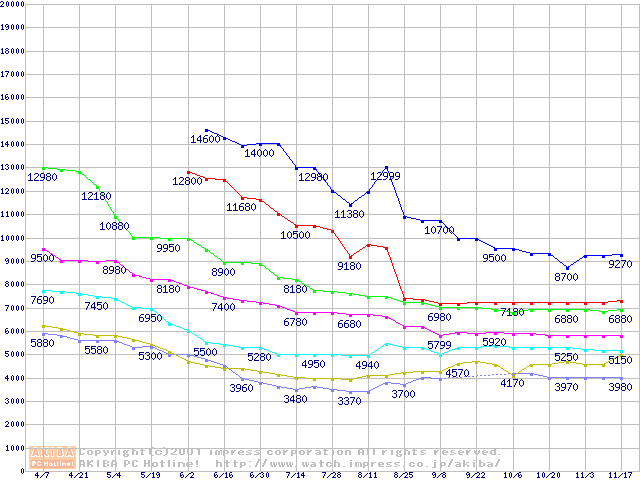 | [↓次グラフ]: | Socket A (Spitfire,PGA,FSB 200MHz,L2 64KB,1.4V)の最安値推移 |