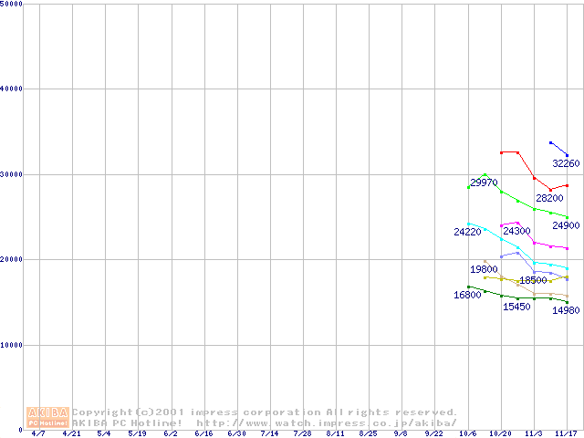 | Socket A (Palomino,OPGA,FSB 266MHz,L2 256KB)の最安値推移(テスト公開中) |