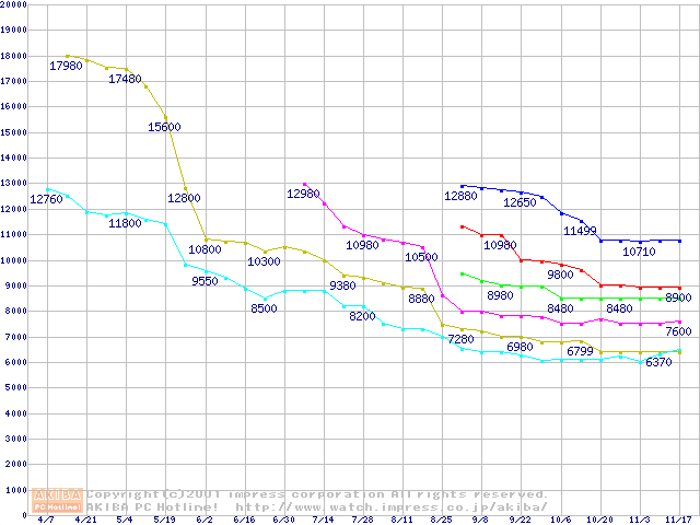 | [↓次グラフ]: | Socket 370 (FC-PGA,FSB 66MHz,L2 128KB)の最安値推移 |