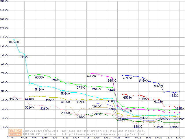 Socket 423 (PGA,L2 256KB)の最安値推移