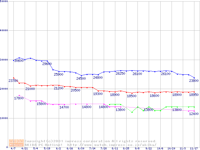 | [↑前グラフ]: | Slot 1 (SECC2,FSB 133MHz,L2 256KB)の最安値推移 |