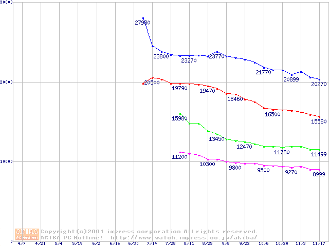 | [↑前グラフ]: | Fireball Plus AS (7200rpm UltraATA/100 2MB)の最安値推移 |