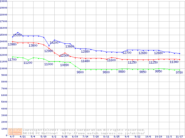 | [↑前グラフ]: | WD Caviar (7200rpm UltraATA/100)の最安値推移 |