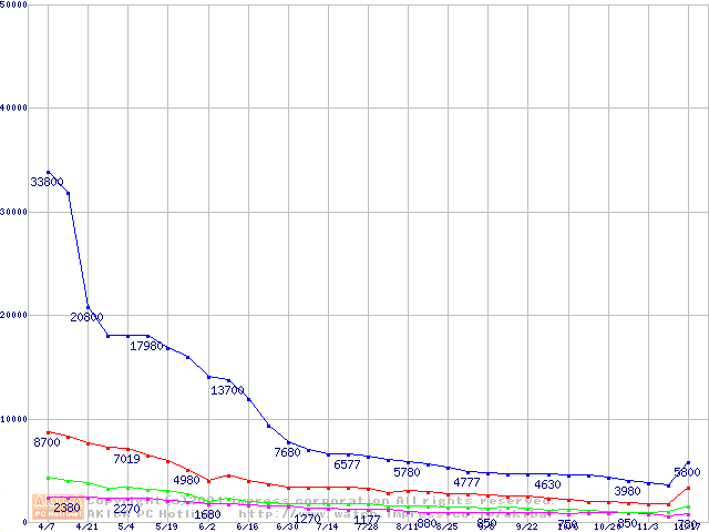 PC133 SDRAM DIMM CasLatency=3の最安値推移