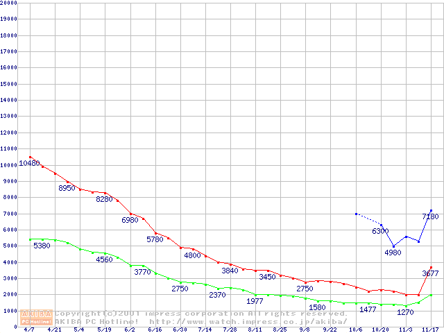 | [↓次グラフ]: | PC100 SDRAM DIMM CasLatency=2の最安値推移 |