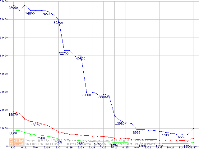 | [↑前グラフ]: | PC100 SDRAM DIMM CasLatency=2 ECC対応の最安値推移 |