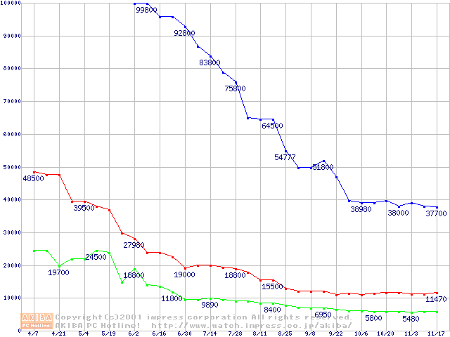 | [↑前グラフ]: | PC800 DRDRAM RIMMの最安値推移 |