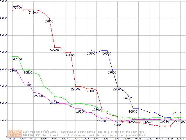 メモリ主要製品の最安値推移