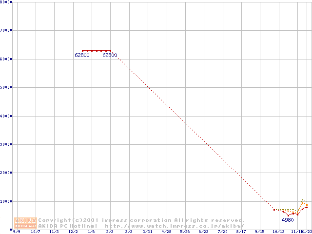 PC133 SDRAM DIMM CasLatency=2の最安値推移