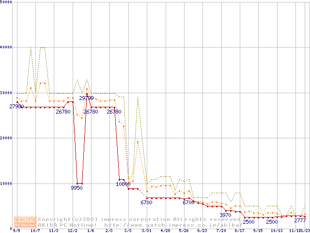 PC800 DRDRAM RIMMの最安値推移