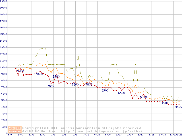 Celeron 533MHz PPGA バルクの価格推移