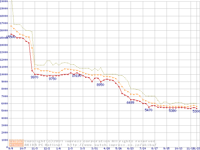 Celeron 700MHz FC-PGA リテールパッケージの価格推移