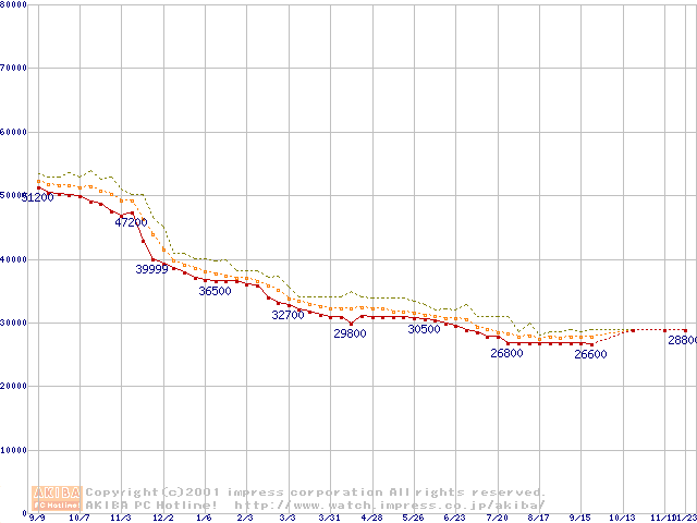 Deskstar 75GXP (7200rpm UltraATA/100 2MB)の最安値推移