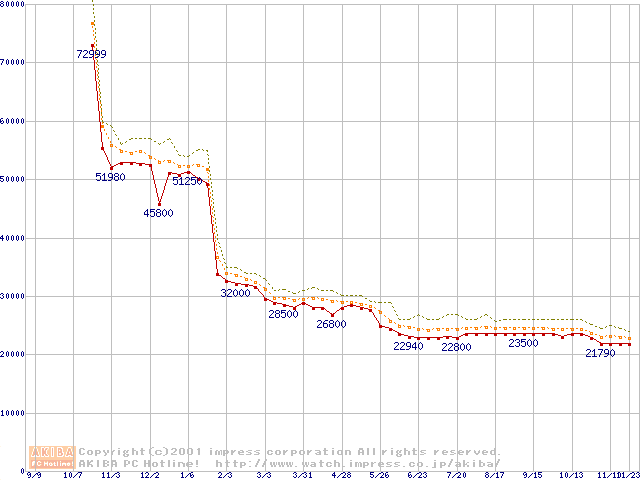 Pentium III 1BGHz FC-PGA リテールパッケージの価格推移