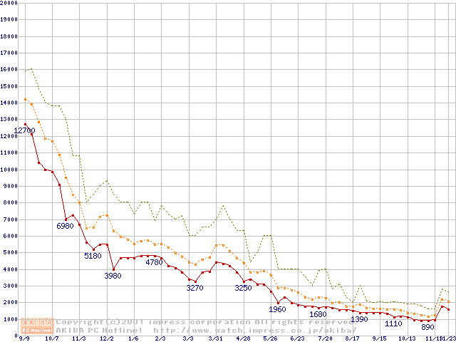 PC100 SDRAM DIMM CasLatency=2の最安値推移