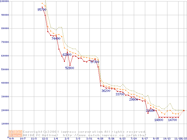 Pentium 4 1.4GHz(423pin)リテールパッケージ(128MB)の価格推移
