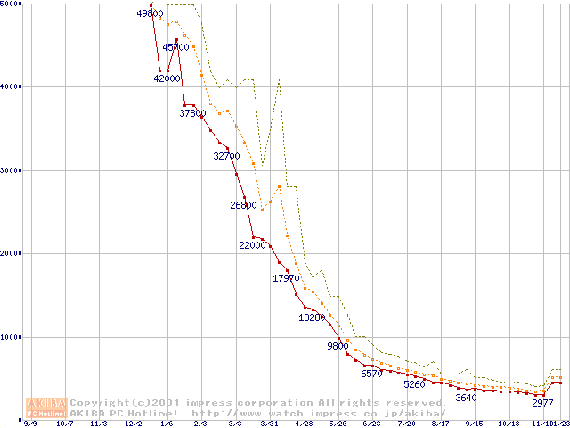 PC2100(DDR266) DDR SDRAM DIMMの最安値推移