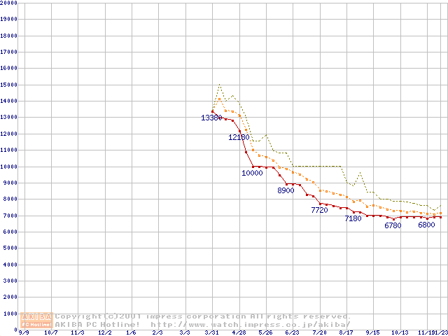 Socket A (Spitfire,PGA,FSB 200MHz,L2 64KB)の最安値推移