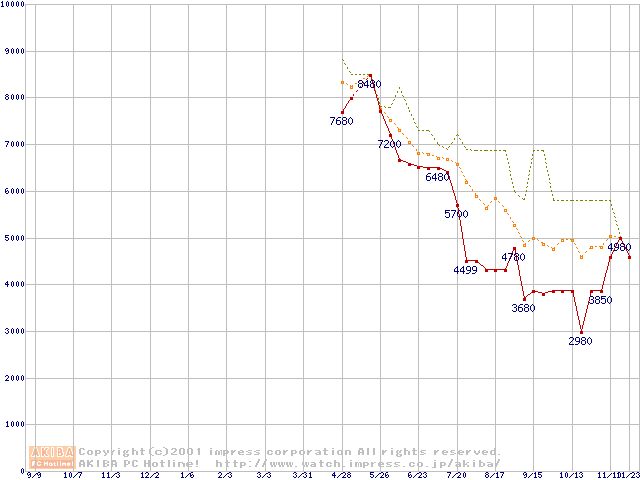 Socket 370 (PGA,FSB 100MHz,L2 64KB)の最安値推移