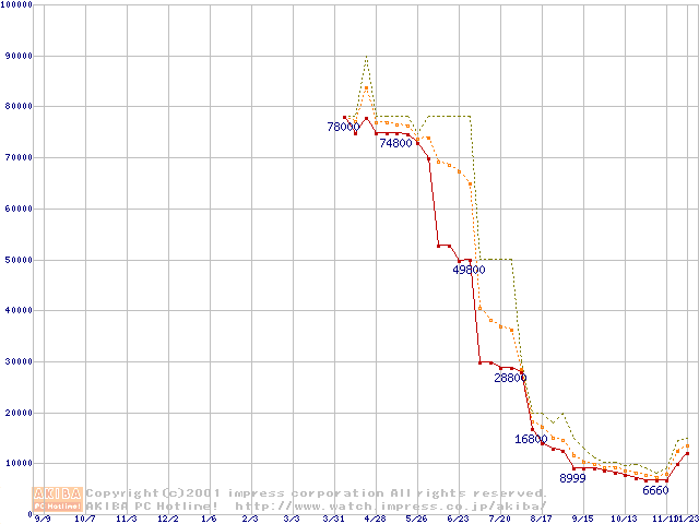 PC2100(DDR266) DDR SDRAM DIMMの最安値推移