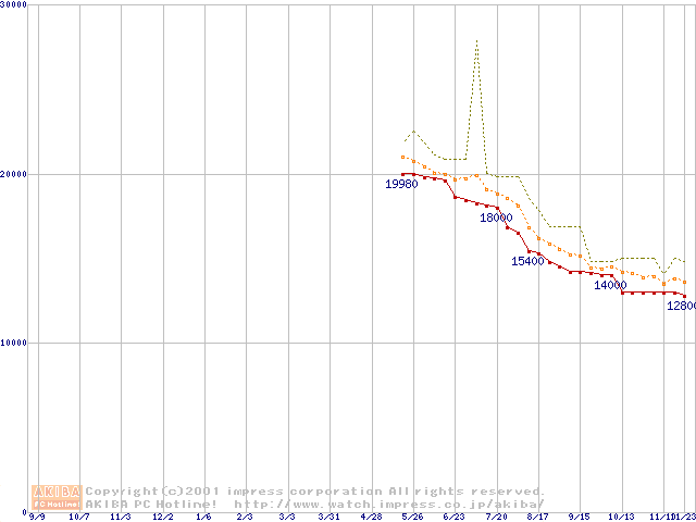 DiamondMax 536DX (5400rpm UltraATA/100 33.3GB/Platter)の最安値推移