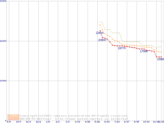 HDD主要製品(最安値1万5千円~2万円未満)の最安値推移