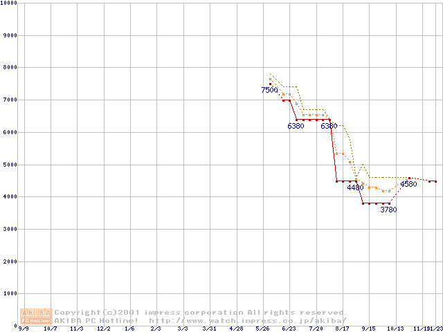Socket 370 (PGA,FSB 133MHz,L2 64KB)の最安値推移