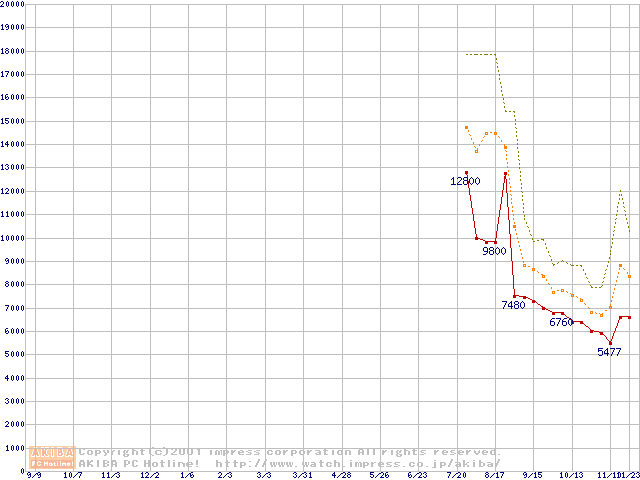 PC2100(DDR266) DDR SDRAM DIMM ECC対応 Registeredタイプの最安値推移