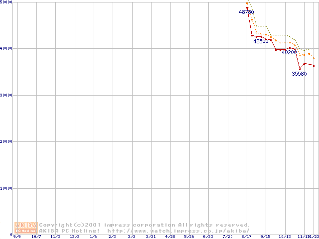 Socket 370 (FC-PGA2,FSB 133MHz,L2 512KB)の最安値推移