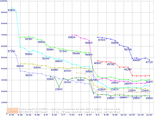Socket 423 (PGA,L2 256KB)の最安値推移