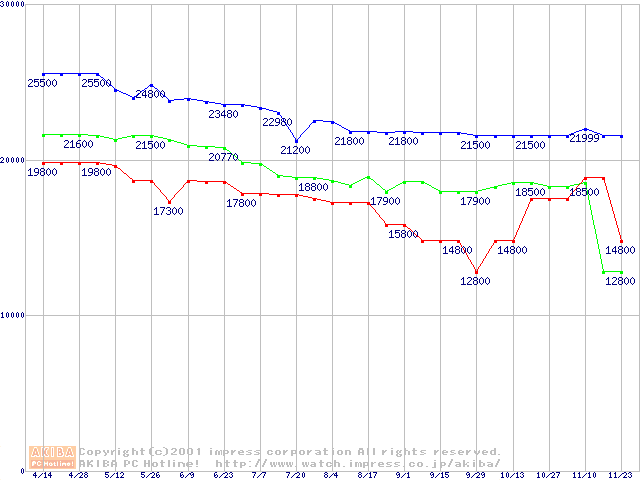 | [↓次グラフ]: | Slot 1 (SECC2,FSB 100MHz,L2 256KB)の最安値推移 |